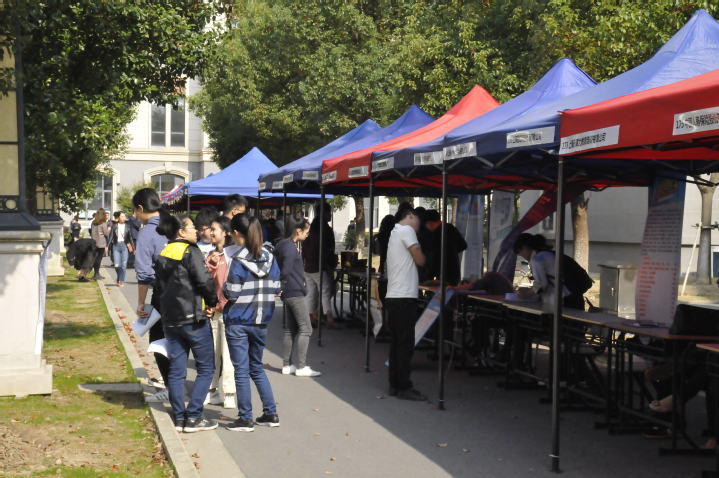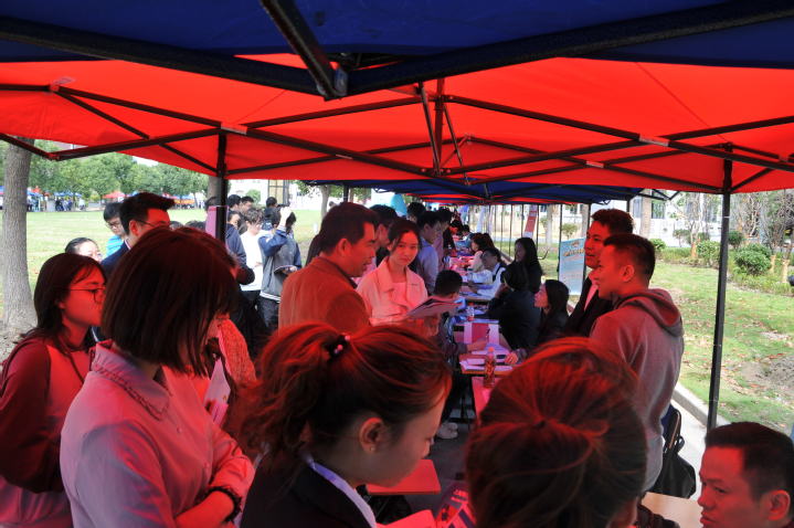 2018年10月25日,风和日丽,桂花飘香,我校2019届毕业生校园招聘会隆重举行。本次招聘会首次采用内外两个会场,分别设在图书馆一楼、致达路、致高路、致强路,共有来自全市267家企业前来参展招聘,我校有2100余名毕业生参加。参加招聘会的企业有上海致达集团股份有限公司、迪士尼商贸(上海)有限公司、永辉超市、上海屈臣氏日用品有限公司、上海公牛电器有限公司、上海统一企业饮料食品有限公司、中智上海经济技术合作公司、上海东昌汽车有限公司、中粮融氏生物科技有限公司等知名500强企业,涉及管理、汽车、旅游、金融、食品、商贸、物流、计算机等多个学科,覆盖我校毕业生所有专业,累计提供实习、就业岗位近3500余个,招聘企业共收到学生简历2600多份,意向录取1400余人次。