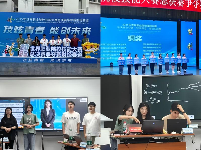 财经赛道铜奖 财经赛道在山西省财政税务专科学校举行。参赛团队由我校经济与管理学院周星、耿昊裔、黄欣等3位教师指导的大数据与会计专业何韵童、曾佳敏、陈德俊、陈家乐等4名学生在强手如云的传统赛道中,奋力拼搏,勇夺铜奖。本次比赛,参赛团队得到了企业数字化管理专业学生吴祺臻的技术支持,大数据与会计专业叶晓文、王雅雯等学生的团队保障。备赛期间,参赛师生日夜奋战在实训室,商讨并自行研发技术装备,先后完成财税AI的14项原创产品,取得了技术创新与技能提升的双丰收。比赛过程中,参赛学生面对各种意外,沉着应对,凭借对自主研发产品的充分自信,以扎实的职业素养,夺得该赛项铜奖。