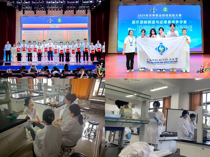 医疗器械制造与运维赛道铜奖 医疗器械制造与运维赛道在广州食品药品职业学院举行。我校食品药品学院李先保、莫秀梅、尚盼盼等3位教师指导的生物制药技术专业张座婷、朱乐怡、顾诗颖、张沈浩等4名学生。团队围绕医疗器械行业的实际需求,聚焦医疗器械制造与运维的精密、创新展开设计,凭借学生的理论应用、实操技能、创新思维与团队协作能力,夺得该赛项奖项。